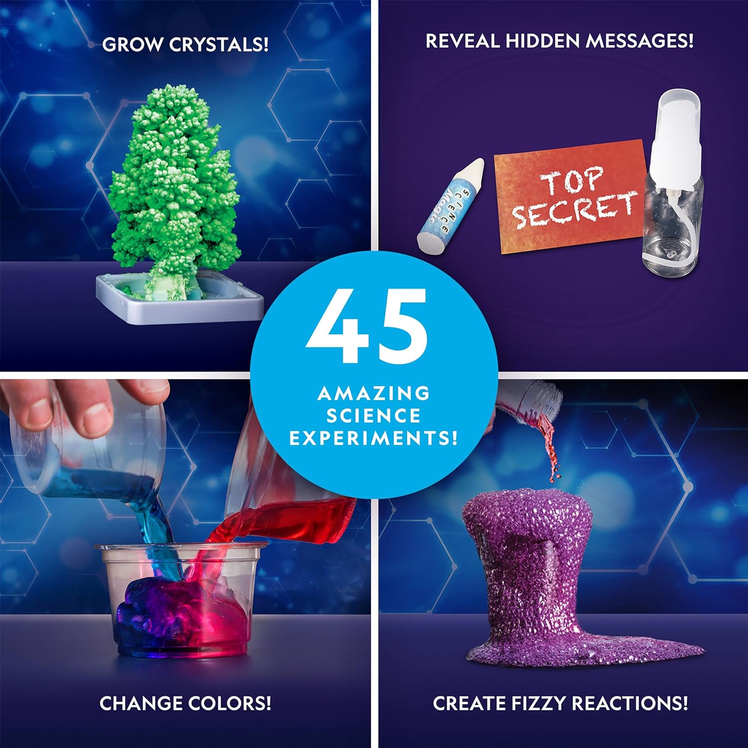 • A TOTAL OF 45 SCIENCE EXPERIMENTS FOR KIDS – The chemistry set itself comes with more than 15 experiments, but there’s also a bonus guide with 30 additional activities using common household items! This science kit for kids is a great STEM resource!